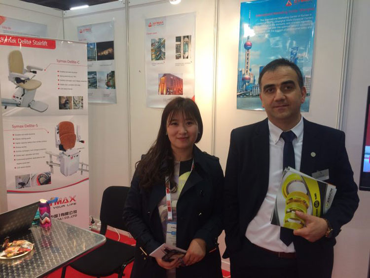 希姆斯电梯在此次展会展出内容主要有:垂直电梯、自动扶梯、自动人行道、座椅电梯、残障人用升降平台、立体停车设备及电梯配件。其中,座椅电梯和升降平台两款全新产品,吸引了众多观展人士的注意和询问。